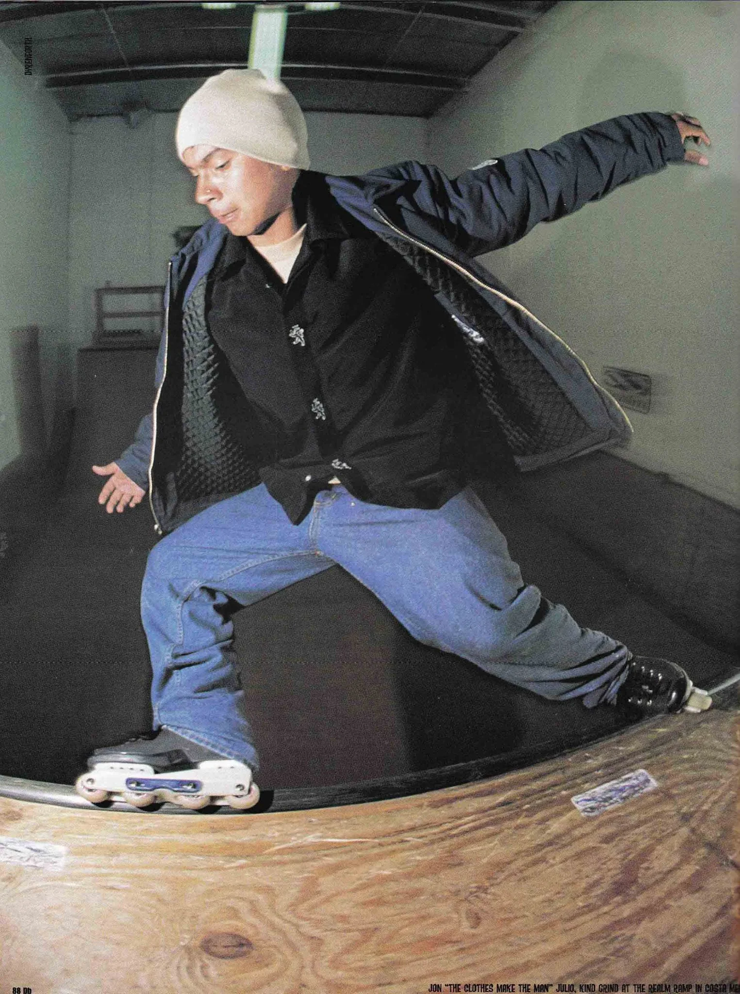 Jon Julio was the first person to skate the frames, here at the Realm ramp down in Costa Mesa. These were the original baseplates, before the Juice System rear baseplate was introduced. (thanks Blade Museum for the DB ad scan)